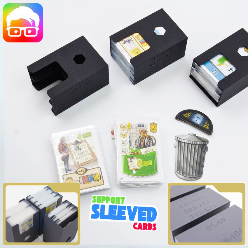 Organisation claire des cartes Card holders numérotés et compatibles sleevesEn savoir plusDes boîtes à cartes gravées et numérotées, prévues pour les cartes sous sleeves, assurent une organisation parfaite et un accès rapide pendant la partie.