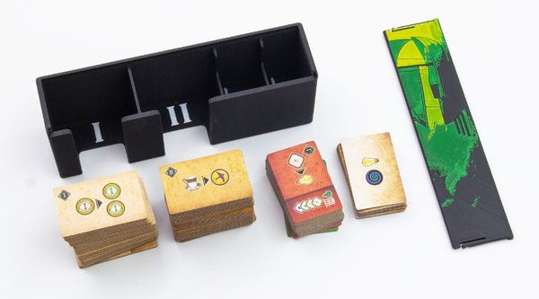 Tout trouve sa place Casier de tuiles numérotéChaque compartiment est marqué (I, II, III) pour trier et identifier rapidement les tuiles selon la phase de jeu.