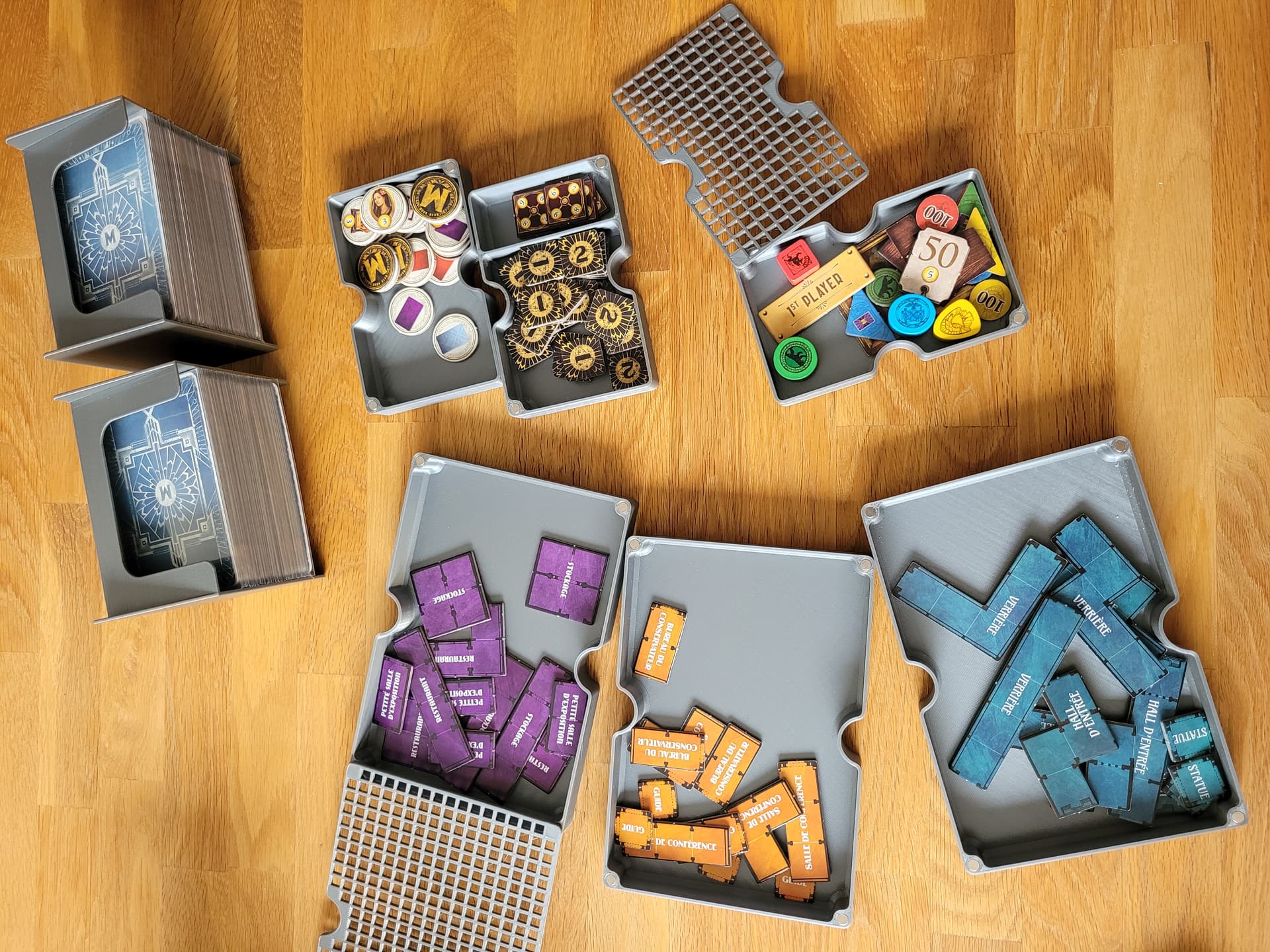 Chaque type de jeton, tuile ou plateau est rangé dans un bac individuel, avec couvercles aimantés pour le transport. Vous pouvez les utiliser directement pendant la partie, pour une mise en place ultra fluide et une table de jeu bien organisée.