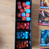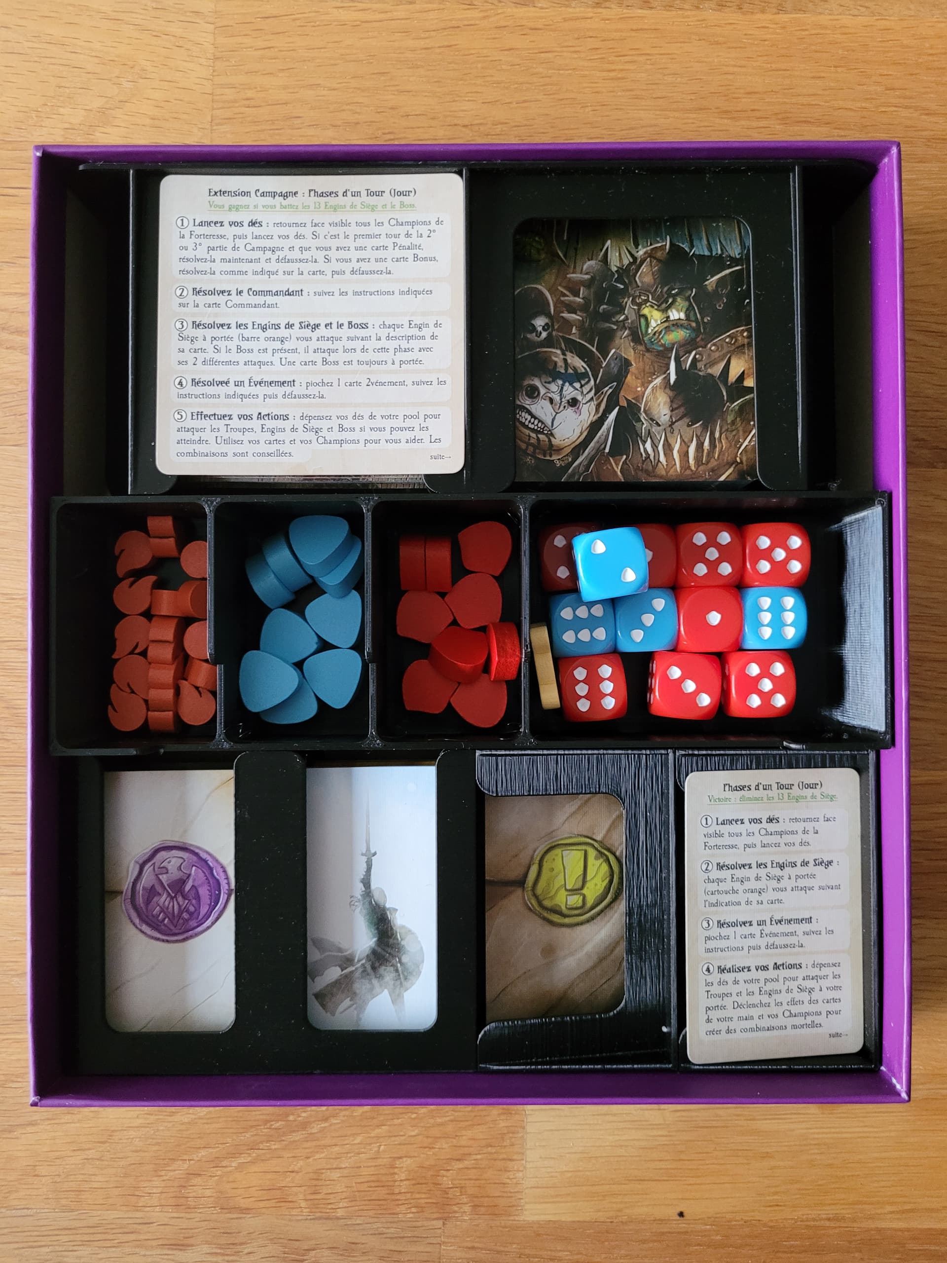 Nous faisons notre maximum pour assurer que tous les jetons et cartes soient non seulement respectés mais aussi soigneusement protégés, évitant ainsi tout dommage. Nos organiseurs sont conçus pour que chaque élément ait sa place attitrée, avec des indicateurs clairs, facilitant une organisation intuitive et rapide.