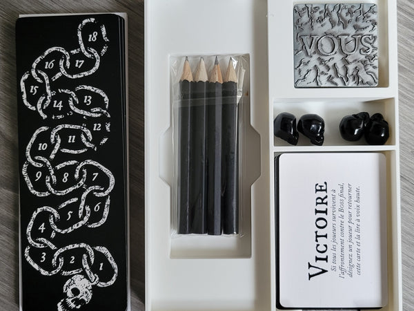Avec sa finition blanche, l’insert s’intègre parfaitement à l’univers visuel noir et blanc du jeu. Un design épuré qui respecte l’ambiance unique de Escape the Dark Castle.