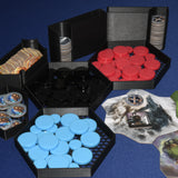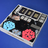 Cet insert offre des compartiments dédiés pour tous les composants du jeu, assurant une organisation claire et efficace. Chaque pièce est facilement accessible pendant la partie, rendant la gestion du matériel fluide et pratique.