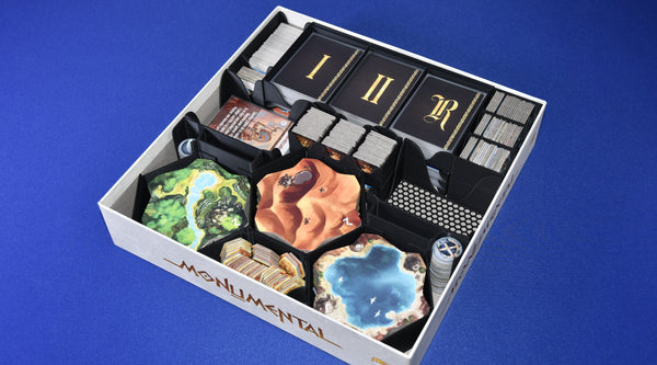 Cet insert est conçu pour accueillir le jeu de base Monumental et ses extensions Lost Kingdom et African Empires dans la boîte d’origine. Profitez d’une organisation optimisée sans avoir à multiplier les boîtes, pour une gestion simple et efficace.