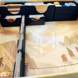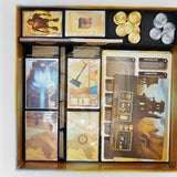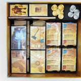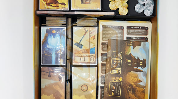 L’insert accueille à la fois le jeu de base et Les Mines d’Ambre, tout en maintenant un rangement vertical parfaitement stable.
