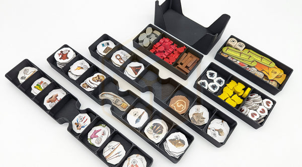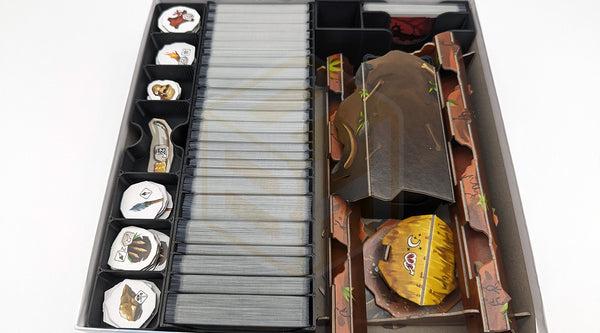 Optimisé pour contenir Paleo ainsi que toutes ses extensions officielles : Les Oiseaux-Terreur, Rites d’Initiation, Une Nouvelle Ère et Les Frelons. Finis les multiples boîtes — tout est parfaitement organisé dans la boîte d’origine, même avec les cartes protégées.