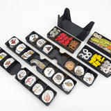 Les conteneurs modulaires de jetons se placent tels quels sur la table, permettant une mise en place fluide et un rangement tout aussi rapide en fin de partie.