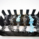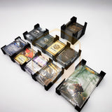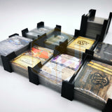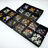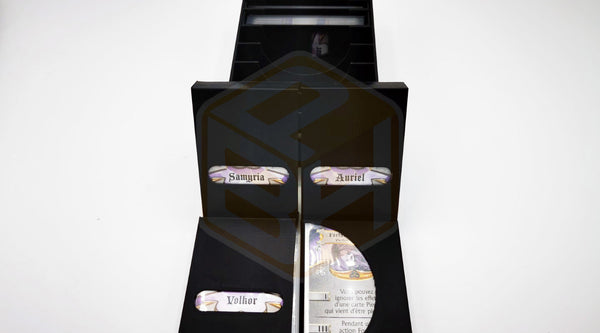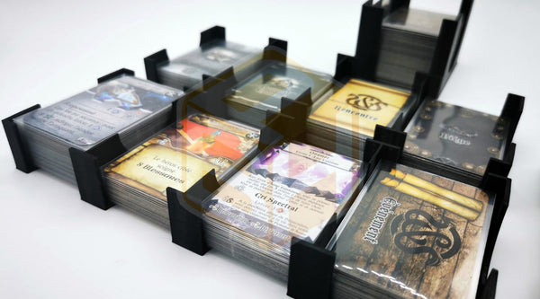 Cartes, figurines et accessoires séparés dans des boîtes individuelles : un rangement clair, rapide et sans risque de confusion.
