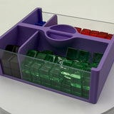 Un porte-jetons innovant avec vitre transparente pour un accès visuel immédiat. Conservez et utilisez facilement cubes failles, jetons énergie, et autres éléments clés des extensions, directement sur la table de jeu.