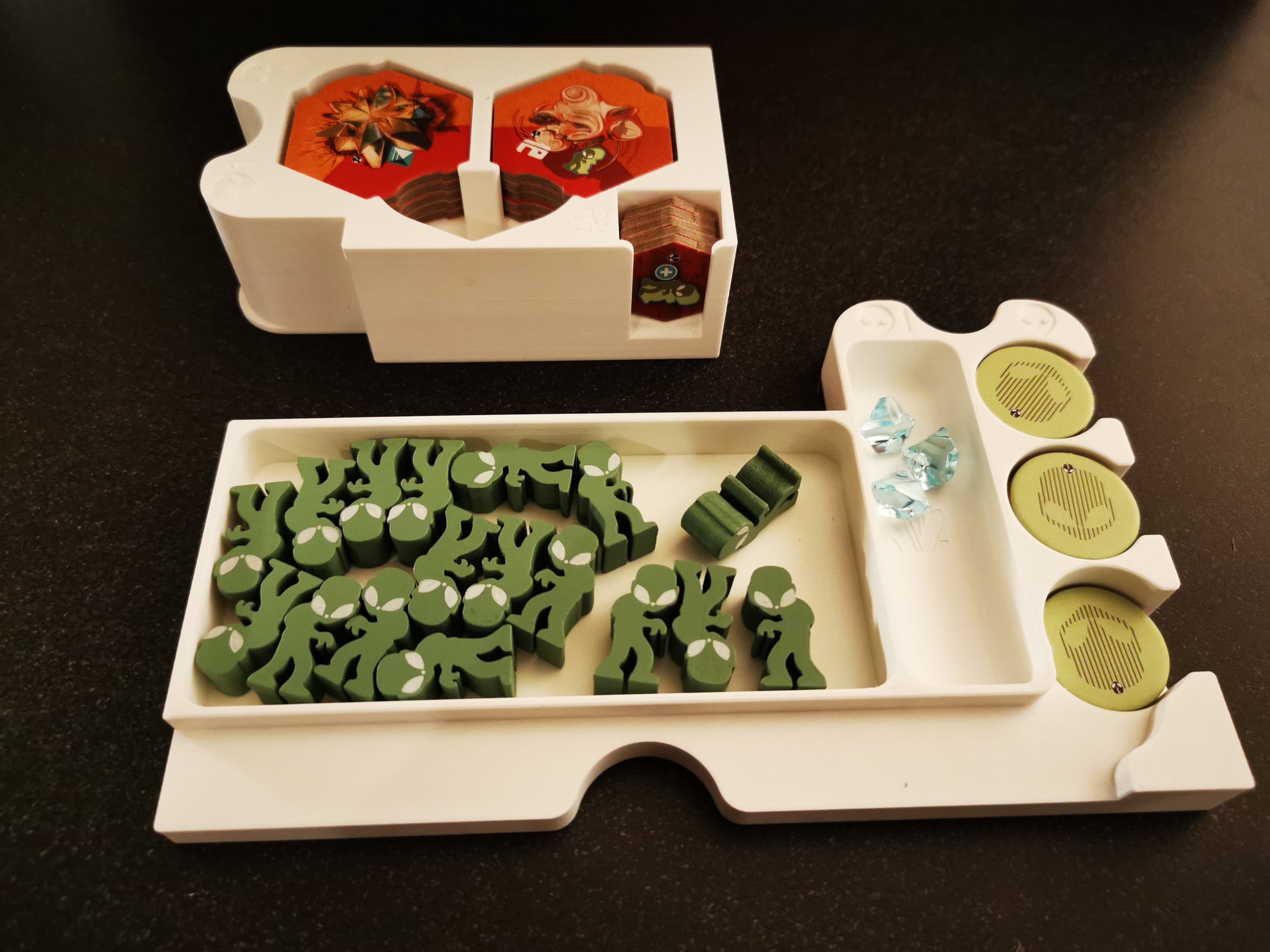 • Organisation par module de l’extension Alien Invasion : chaque scénario (1 à 4) bénéficie de son propre compartiment identifié.