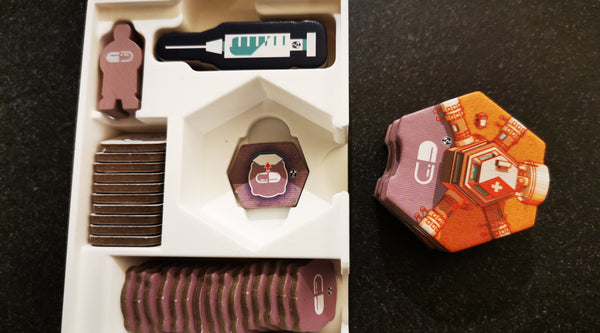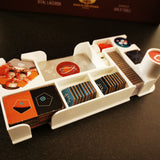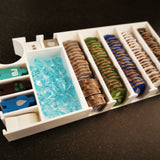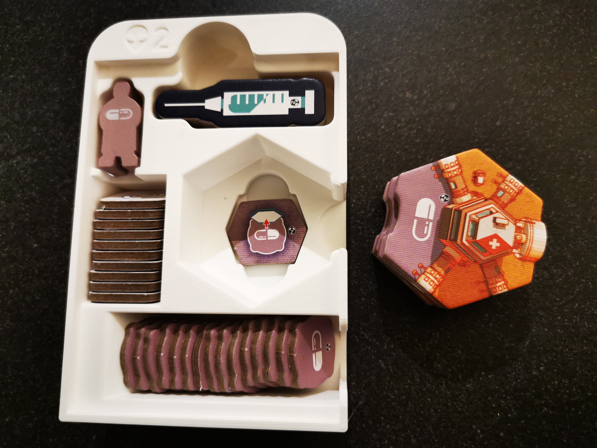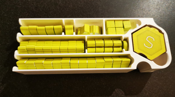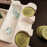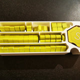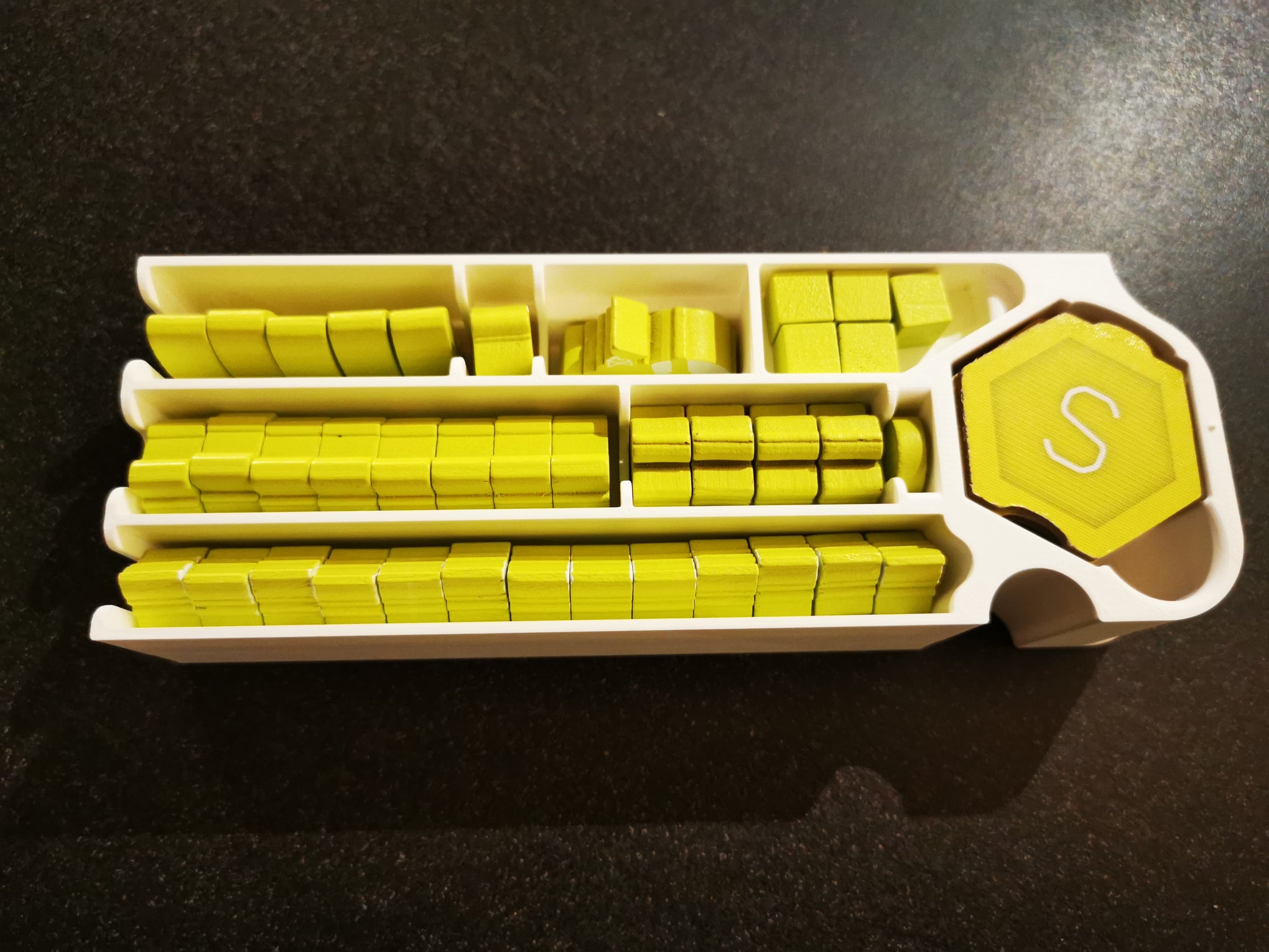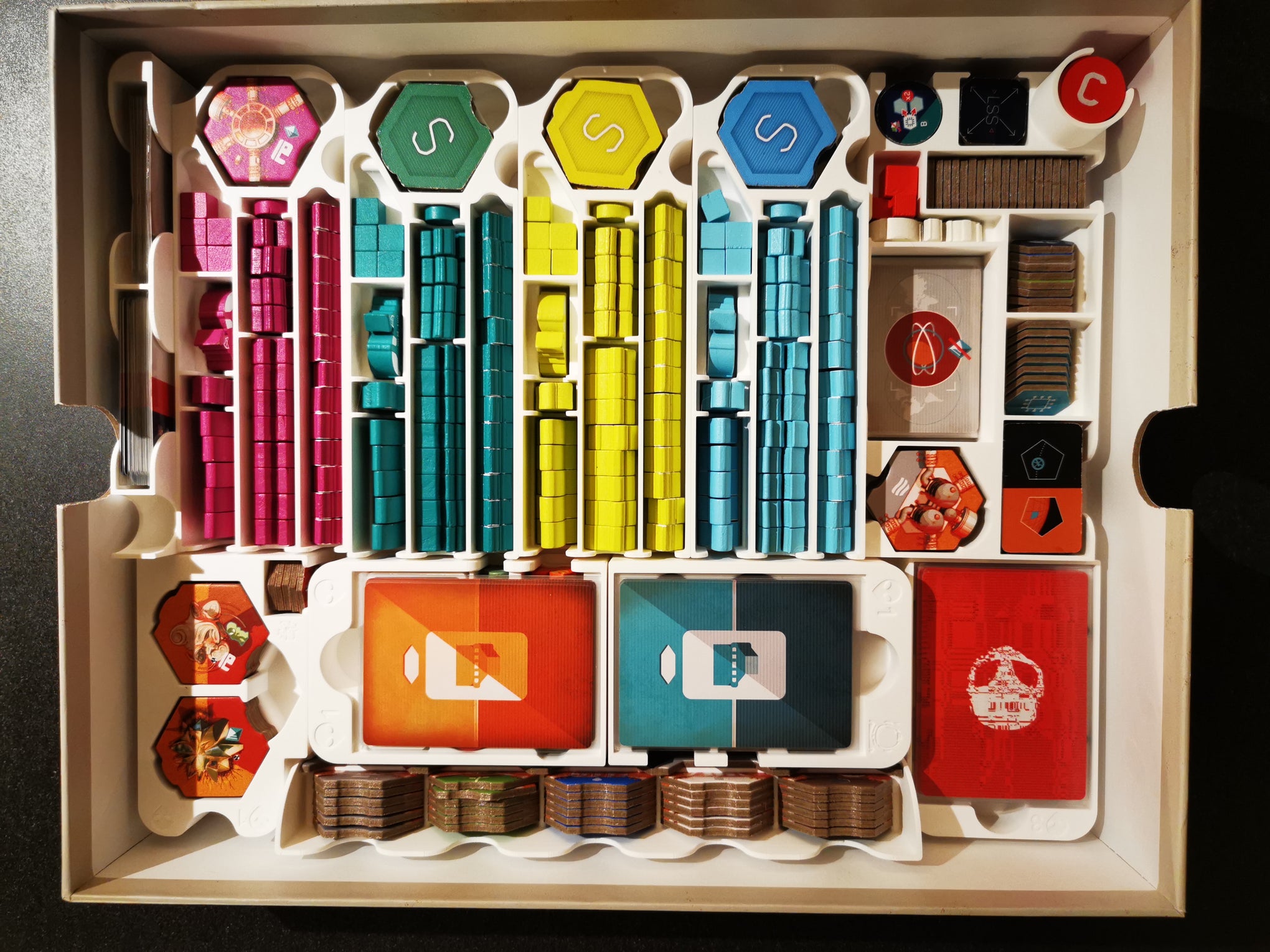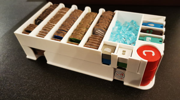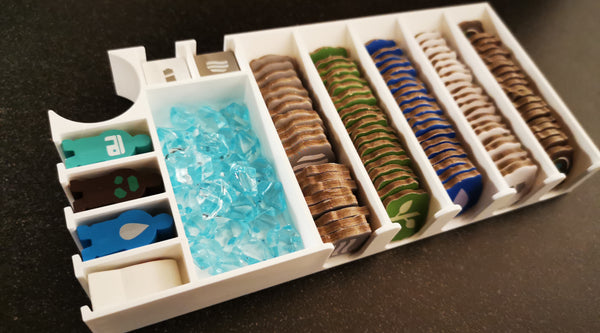 Chaque joueur dispose d’un tray dédié avec tous ses composants : cubes, tuiles et jetons. Gain de temps garanti pour la mise en place et le rangement, tout en assurant une identification instantanée de chaque couleur.