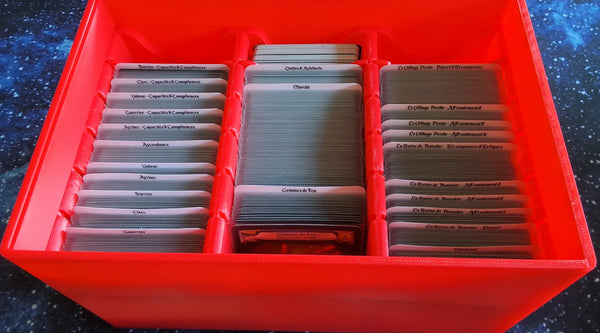 Grâce aux séparateurs personnalisés, chaque deck a son compartiment dédié. Les cartes sont faciles à repérer, à sortir, à ranger — même quand certaines lignes ne sont pas pleines. Le système empêche les chutes, les mélanges accidentels et offre une lisibilité immédiate, même avec une grosse collection.