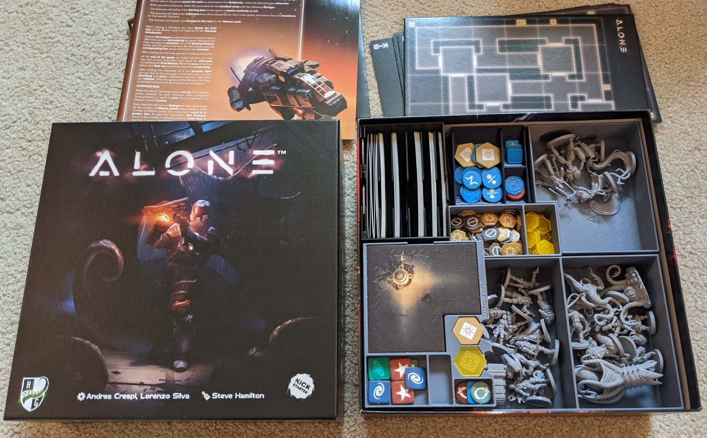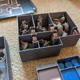 Ce rangement sur mesure est spécialement conçu pour la version Rookie Pledge du Kickstarter d’Alone, incluant le jeu de base, les stretch goals, les exclusivités KS ainsi que l’extension Alpha. L’ensemble du contenu est réuni dans une seule boîte, pour un gain de place maximal et une organisation optimisée.