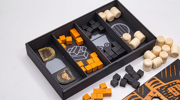 Découvrez l’insert Brass Birmingham signé AM-Media, disponible en exclusivité dans notre collection Éphémère. Cet insert allie ingéniosité et esthétisme, avec des couvercles décorés qui reprennent l’univers visuel du jeu et offrent une expérience de rangement unique.