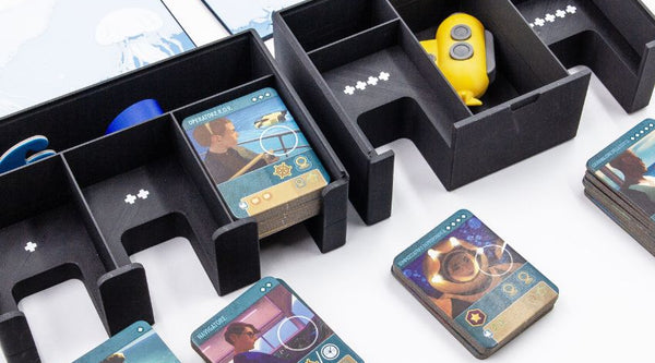 Un compartiment dédié + un sous-marin offert Trieurs et bonus exclusifLes cartes de personnages et les tuiles trouvent leur place dans des trieurs ajustés. En plus, l’insert inclut un sous-marin imprimé en 3D offert, pour enrichir encore votre expérience de jeu.
