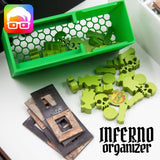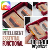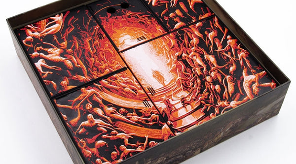 Une boîte transformée en œuvre d’art. Superposition artistique immersiveLes couvercles illustrés en layered art composent une fresque flamboyante inspirée de l’univers d’Inferno, offrant à la boîte un rendu visuel spectaculaire.