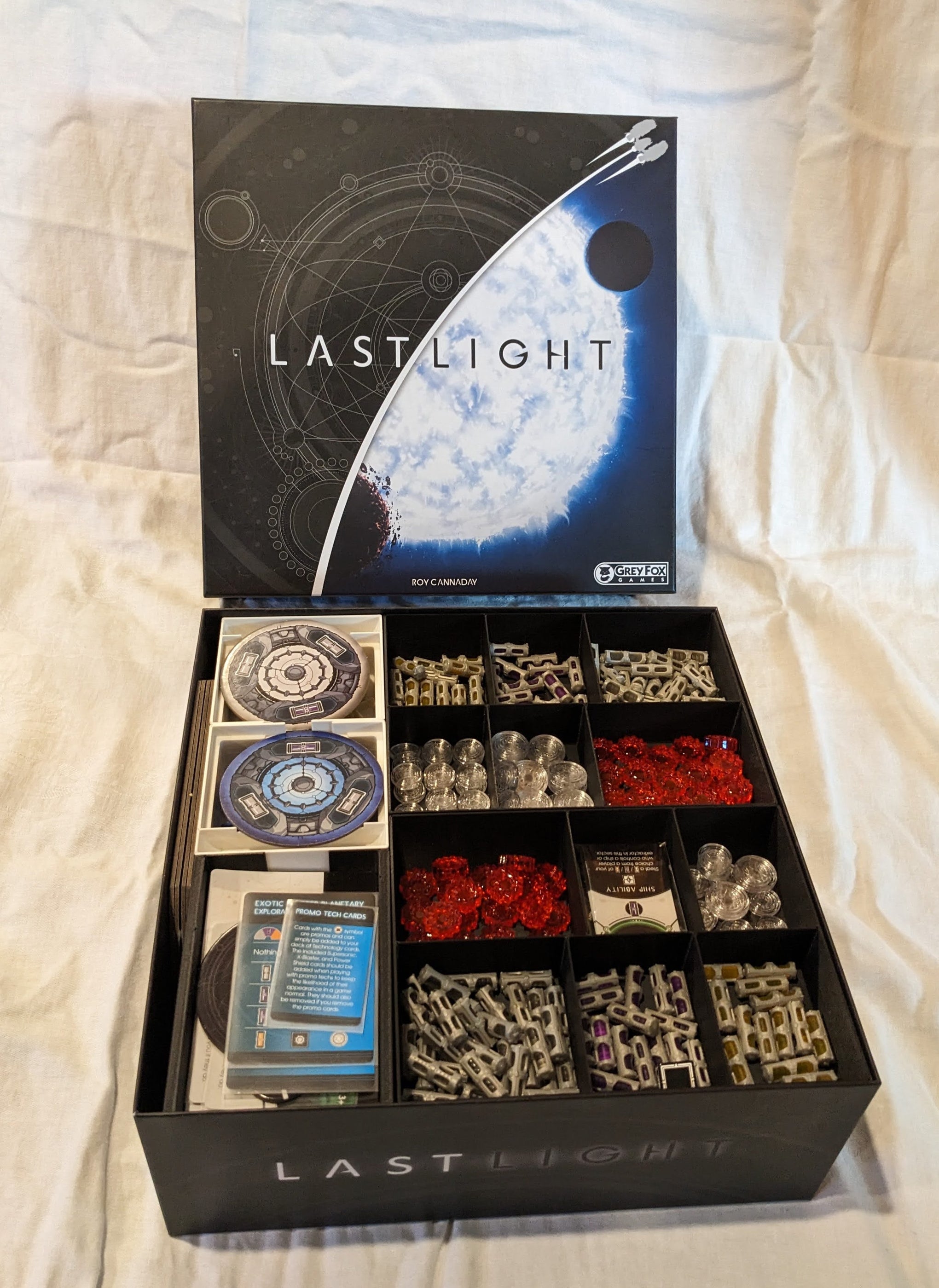 Plongez au cœur de la galaxie avec un insert taillé pour l’efficacité. Ce rangement a été conçu pour accueillir le jeu de base Last Light ainsi que son extension Infinity, tout en facilitant la mise en place et le rangement grâce à une structure modulaire pensée pour les joueurs.