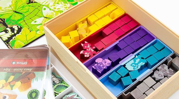 Chaque joueur prêt instantanément Trieurs colorés individuelsDes bacs colorés dédiés regroupent cubes et meeples par joueur. À l’ouverture, tout est prêt pour lancer la partie sans préparation fastidieuse : chacun récupère son set complet en un geste.