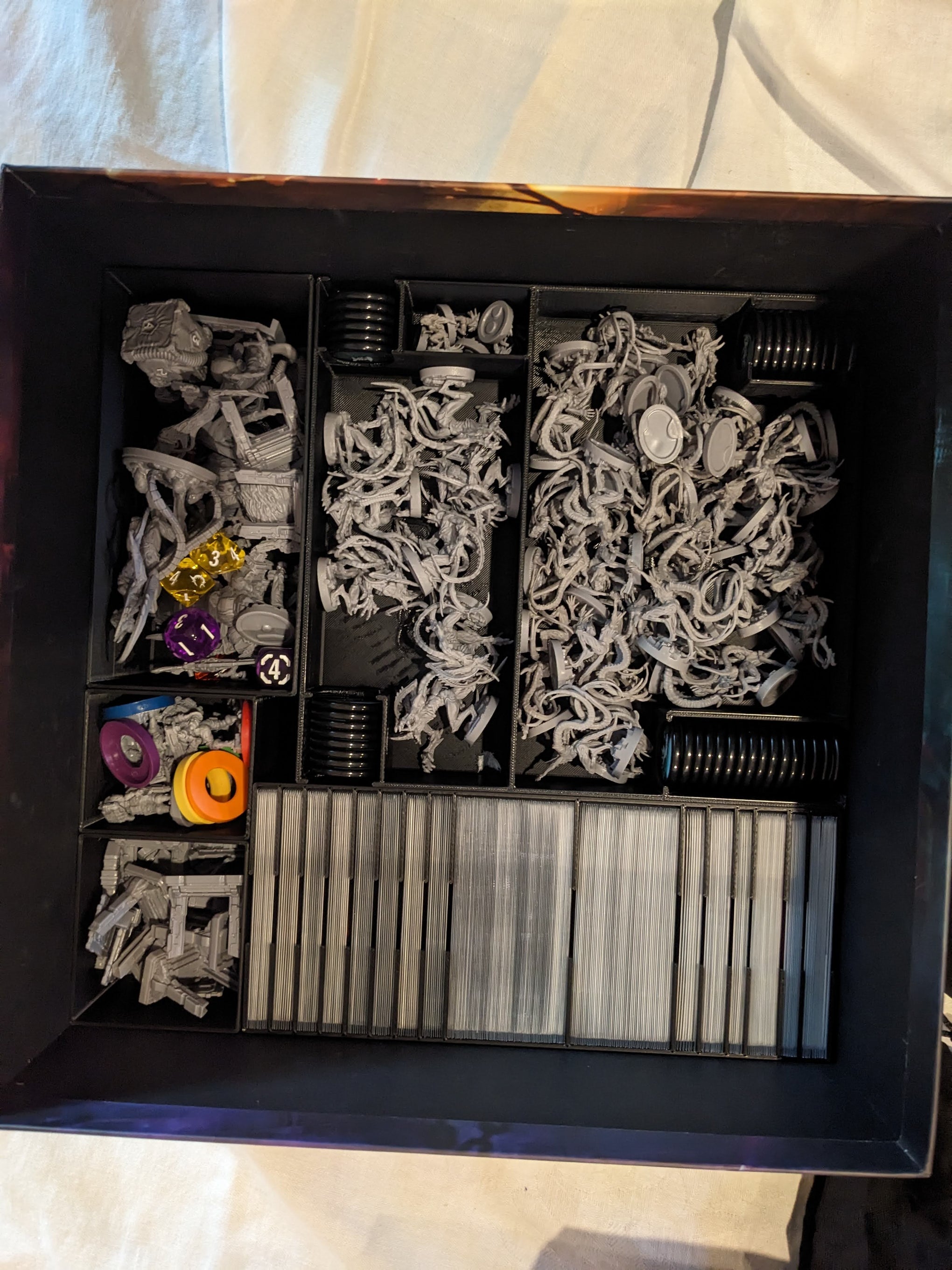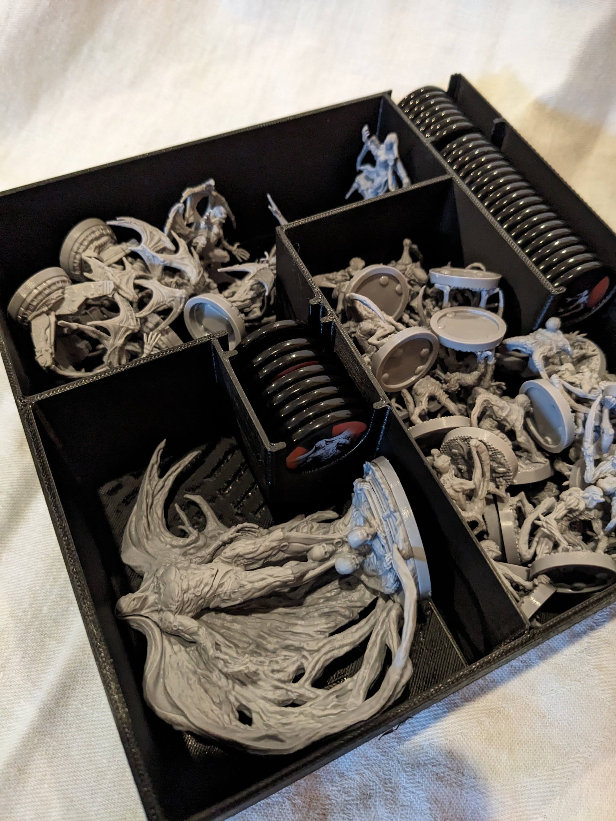 Chaque créature est rangée dans son espace dédié, ce qui permet une mise en place rapide et sans mélange entre les différentes menaces du jeu.