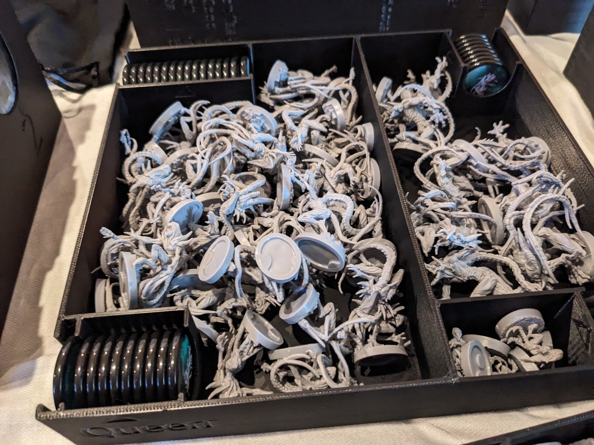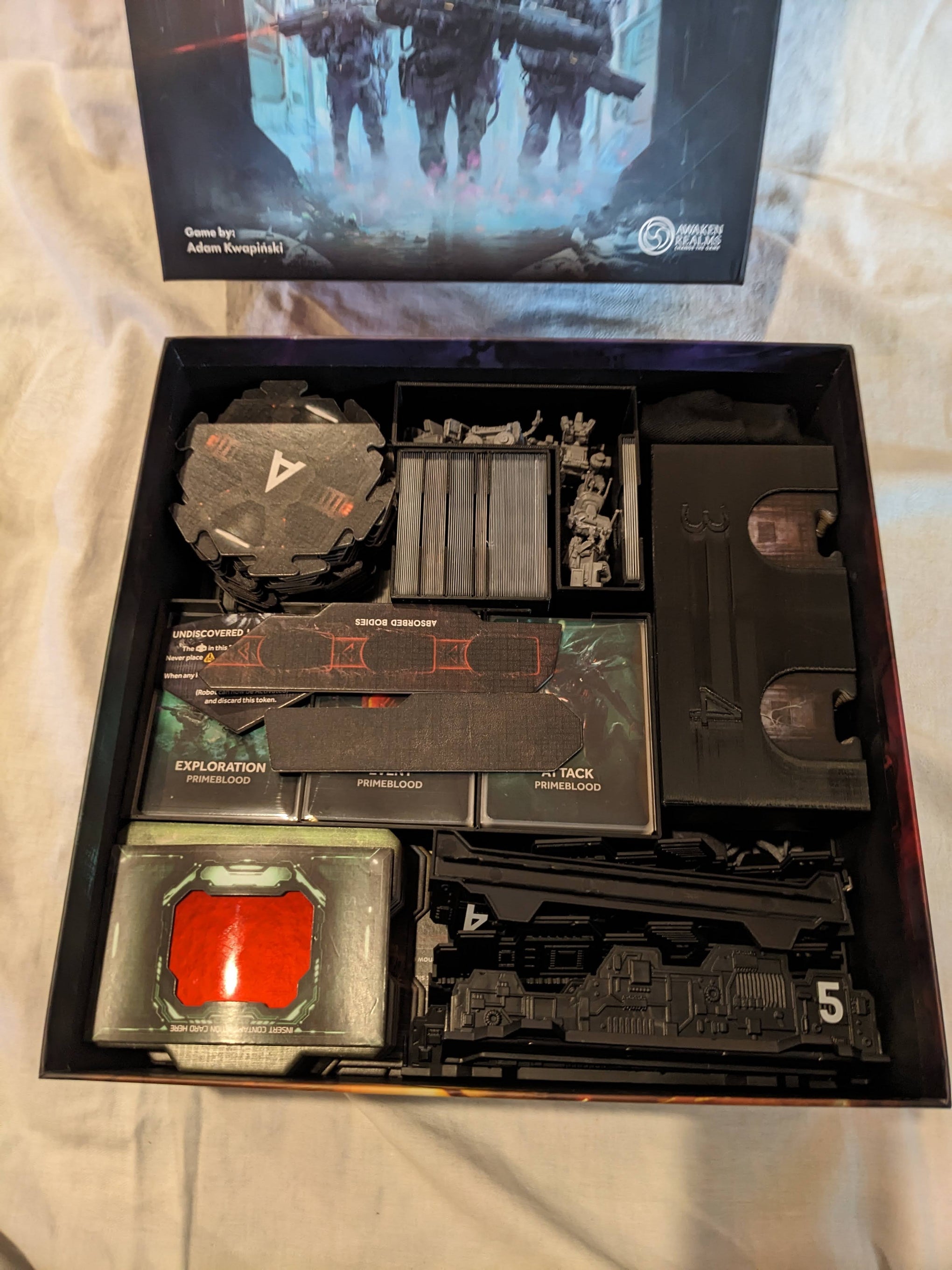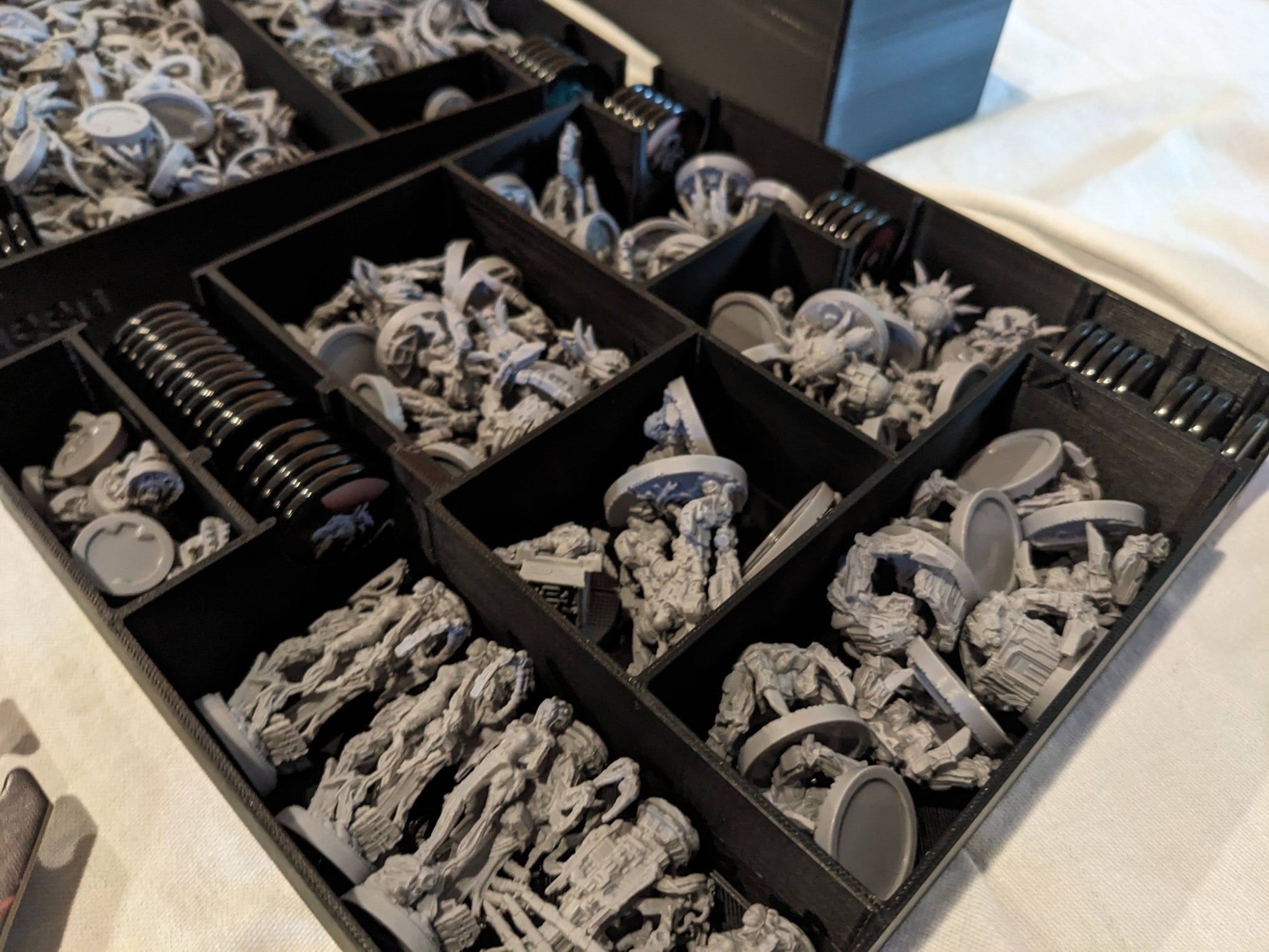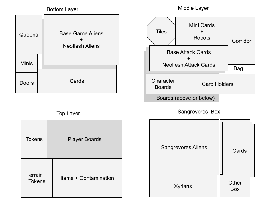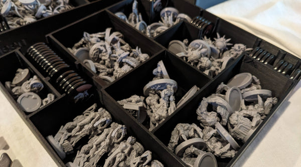 Primeblood, Neoflesh, etc., chaque extension est rangée dans son propre compartiment marqué, prêt à être intégré ou retiré selon la session jouée.