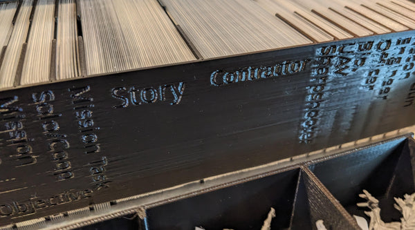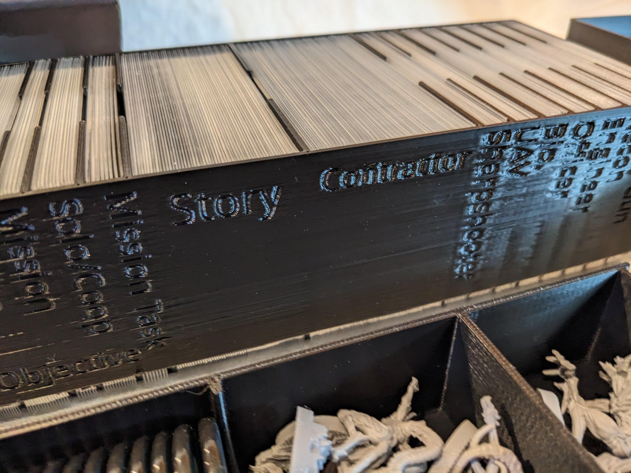 Story, Contractor, Objective… tous les paquets sont identifiables d’un coup d’œil grâce aux indications imprimées sur l’insert, pour un accès rapide pendant la partie.