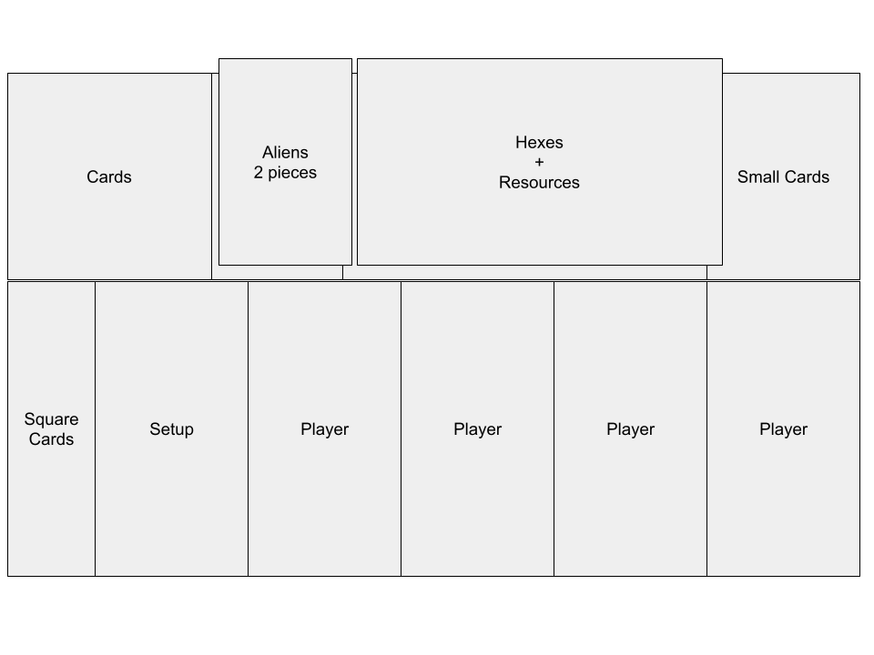 • Emplacements spéciaux pour les tuiles aliens à part, permettant de les retirer facilement lors des parties sans extension.