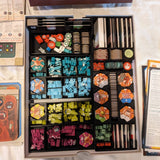 Chaque joueur dispose de son propre module contenant pions, tuiles et ressources spécifiques, facilitant la mise en place et le rangement tout en gardant une parfaite lisibilité en cours de partie.