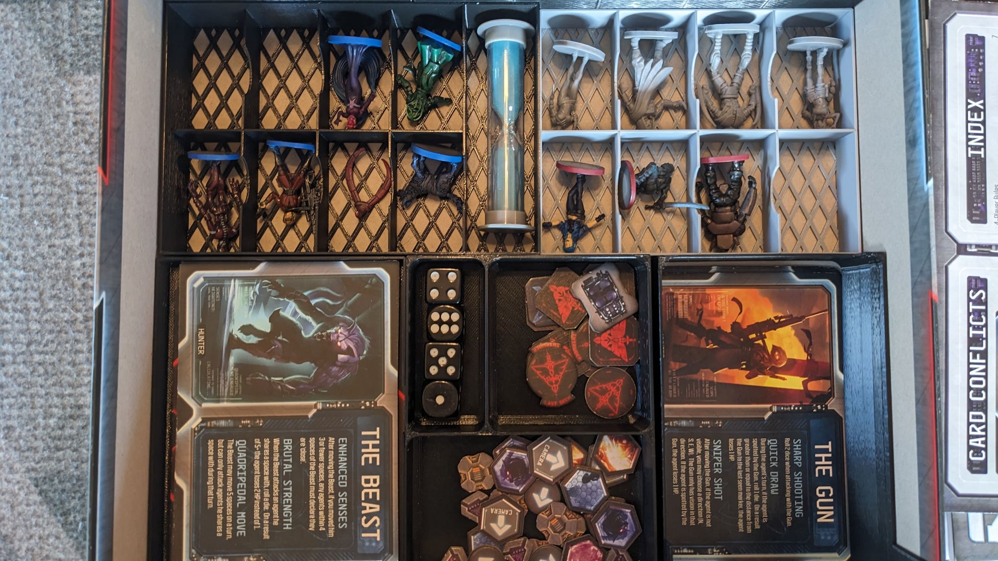 Chaque agent et chasseur dispose de son propre compartiment moulé, garantissant une protection optimale des figurines peintes et un accès direct en début de partie, sans manipulation inutile.